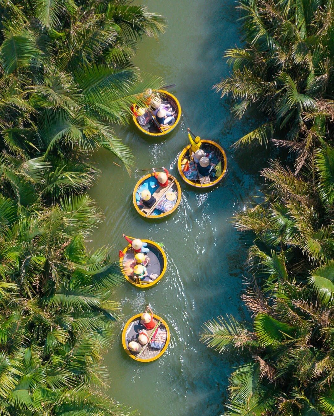 Activity: Enjoy a thrilling and fun ride in a traditional Basket Boat (Thúng Chai), often featuring synchronized spinning performances.